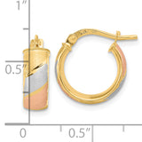 14k w/White and Rose Rhodium Polished Satin Hoop Earrings