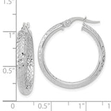 14K White Gold Polished and Diamond-cut Inside and Out Fancy Hoop Earrings