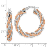 14K White Gold Rose Rhodium Polished and Textured Twisted Hoop Earrings