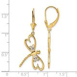 14k & White Rhodium D/C Dragonfly Leverback Earrings